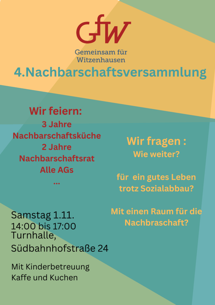 Die 4. Nachbarschaftsversammlung von Gemeinsam für Witzen (GfW) findet statt, am